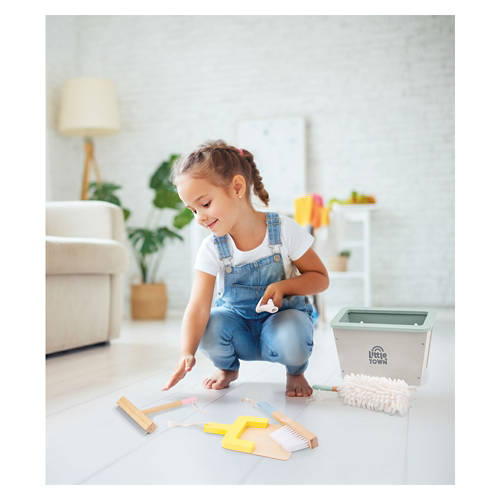 Kids Wooden Kitchen Accessories Toy Play Set - Cleaning Set