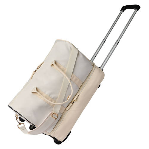 Dimensions: 20.87" x 14.57" x 9.06" Outer shell made of 100% recycled polyester Bottom zipper compartment Six interior pockets Telescopic handle and wheels