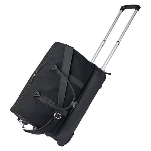 Dimensions: 20.87" x 14.57" x 9.06" Outer shell made of 100% recycled polyester Bottom zipper compartment Six interior pockets Telescopic handle and wheels
