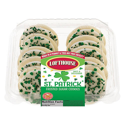 Finish off your party spread with these Lofthouse St. Patrick's Day Frosted Sugar Cookies! Each soft sugar cookie is topped with sweet white icing and dark green shamrock sprinkles to stay perfectly on theme. Team yours with festive mixed drinks and classic party snacks for a delicious treat your friends will love!