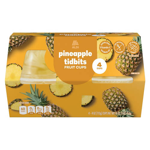Pineapple Tidbits in 100% Fruit Juice, 4 Fruit Cups