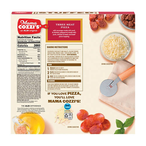 Indulge in Mama Cozzi's Cheese Stuffed Three Meat Crust Pizza. This 31.9 oz pizza is loaded with Italian sausage, pepperoni and cooked beef, all atop a cheese-stuffed crust. Perfect for a quick dinner or a game night snack, this pizza delivers a satisfying bite every time. Simply bake and enjoy a hearty, flavorful meal.
