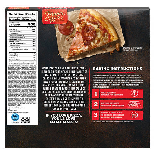 This Mama Cozzi's Pizza Kitchen Mega Meat Rising Crust Pizza is perfect for busy nights at home! The hearty frozen pizza features creamy mozzarella, pork belly crumbles, spicy pepperoni, bacon bits, beef, and Capicola ham atop a fluffy rising crust. Just pop yours in the oven for a delicious and filling meal in minutes!