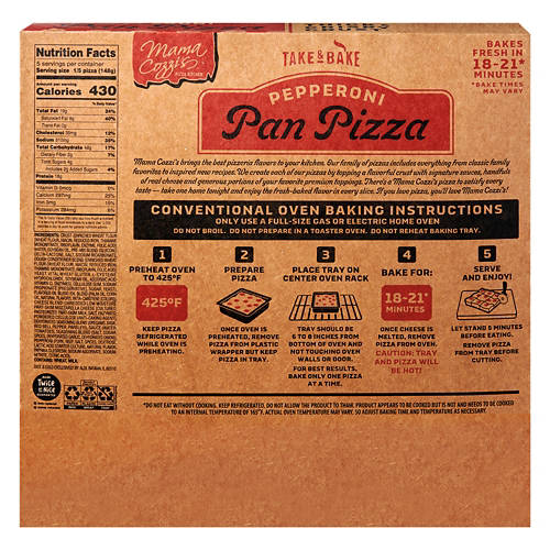 Mama Cozzi's Pizza Kitchen Thick & Crispy Crust Pepperoni Pan Pizza is your answer to a delicious meal in 18-21 minutes. Topped with mozzarella cheese and pepperoni, this pizza offers a thick and crispy crust that satisfies. Made with 100% real cheese, it's perfect for family dinners or gatherings. The included baking tray ensures easy cooking. Enjoy a flavorful and convenient meal with Mama Cozzi's Thick & Crispy Crust Pepperoni Pan Pizza.