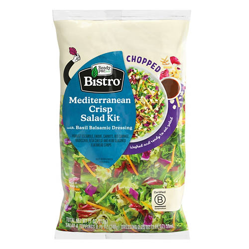This Mediterranean Chopped Salad Kit is your perfect meal solution. This crisp salad mix includes a blend of fresh veggies like romaine, endive and radicchio, topped with feta cheese and herb-seasoned flatbread strips. The accompanying basil balsamic dressing ties it all together. Ideal for a quick lunch or a side dish to any dinner, this kit makes healthy eating easy and enjoyable. Enjoy a flavorful, effortless meal today.