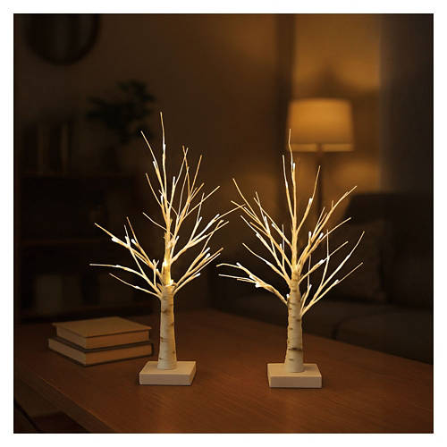 Create a beautiful winter scene in your home with these LED Birch Trees Branches are positionable Each tree requires 3 x AA batteries (batteries not included) Includes 6 hour on/ 18 hour off timer function