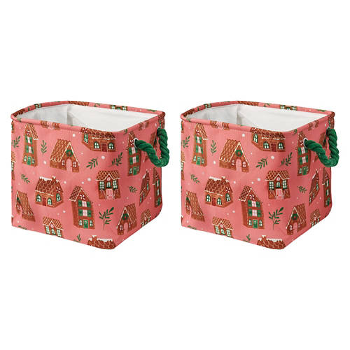 2 Pack Holiday Canvas Bins - Gingerbread House