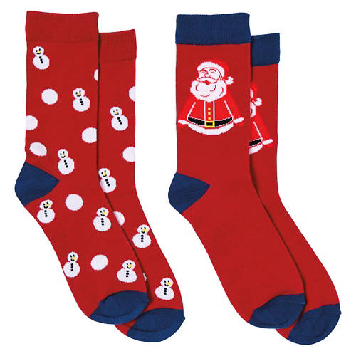 2 Pack Ladies Holiday Socks - Santa/Red, 4-10