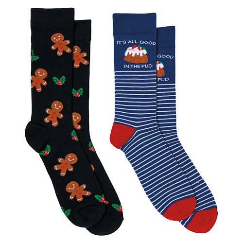2 Pack Men's Holiday Socks - Gingerbread Man/Blue, 6-12