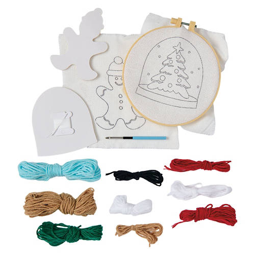 Each kit makes 2 punch needle ornaments Kit includes two pieces of printed cloth, embroidery hoop, punch needle tool, punch needle threader, 2 adhesive foam stickers, yarn, needle, thread, and hanging twine, Instructions included