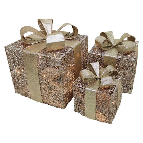 3 Pack LED Presents, Gold