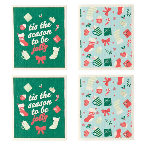 4 Pack Swedish Dish Cloths - Christmas Toss