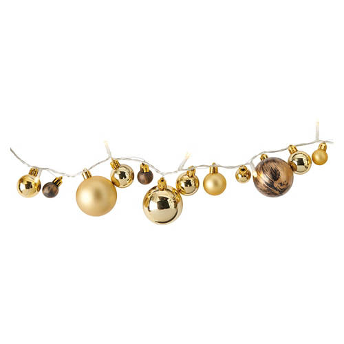 LED Ornament Garland or LED Holiday Card Holder will add a touch of elegance and warmth to your holiday decor. Choose from Silver, Gold, or Red, garland features 50 ornaments with 20 warm white LED bulbs. 6ft long, perfect for draping over any table, bookshelf or mantel. Includes timer function 6hrs ON/18 hrs OFF. Requires 3 x AA batteries (not included) - Indoor Use Only.
