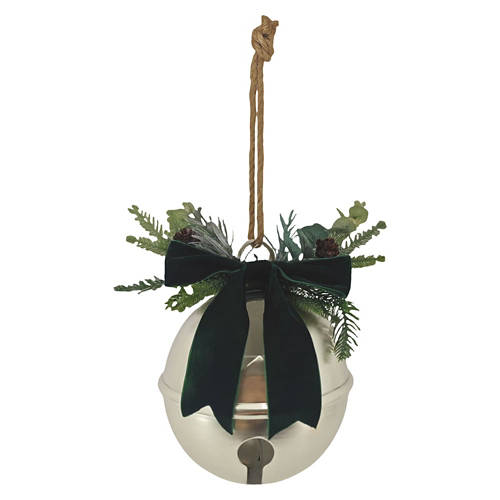 Each bell is approx. 13.8" x 8.27" x 11.8" Ring in the holidays with our Jumbo Jingle Bell. Perfect to display on your mantle, tabletop, doorway, and more. Each bell is accented with beautiful faux holiday greenery and bow. Includes a jute loop for easy hanging.