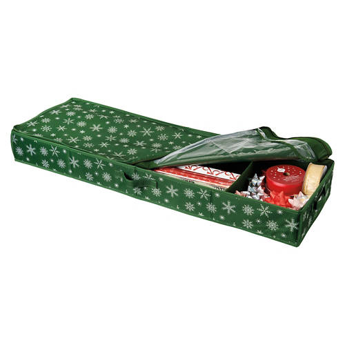 Gift wrap Includes removable divider and inner pockets Keep gift wrapping supplies neat, organized, and easy to find Includes handle and label holder Size: 40.5 in l x 13.5 in w x 4.5 in h