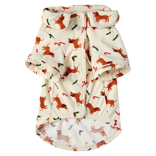 Festive pajamas to keep your pet warm and cozy. Super soft and durable. Machine washable.