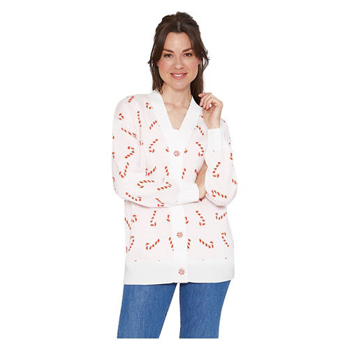Ladies Holiday Cardigan - Candy Cane, XL