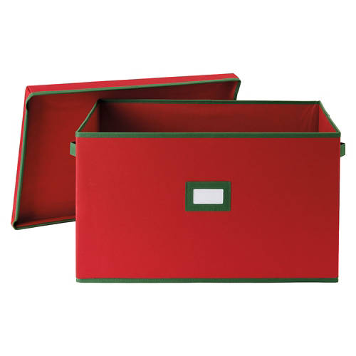 Store and organize bows, ornaments, ribbons, and more Includes handles and label holder Large storage: 21 in l x 14in w x 12 in h