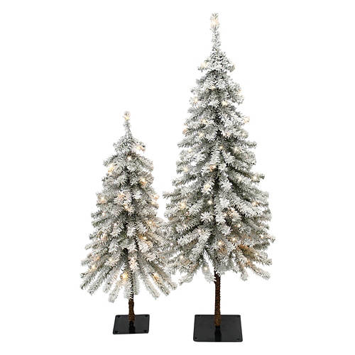 3' & 4' Tall LED Flocked Alpine Trees - 2 Pack