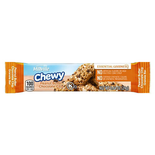Millville Chocolate Chip Peanut Butter Chewy Granola Bars are your go-to for a quick, delicious energy boost. These bars are individually wrapped for easy on-the-go enjoyment. Whether you're packing a lunch or need a quick bite between meetings, these granola bars provide the perfect balance of peanut butter and chocolate chip goodness. These bars are a guilt-free option for satisfying your sweet tooth and hunger.