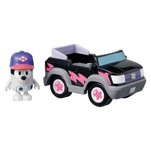 Pizza Girls and Muffin Hit the road with Bluey and her friends in the new Bluey vehicles! Ride along in the Pizza Girls Car with Muffin. This vehicle comes with a 2.5" (6cm) Muffin figure wearing a mechanic's hat. With articulated arms and legs, she's perfect for play and posing. Children will love using these fun-filled cars to recreate some of the most memorable moments from the show and make up new adventures.