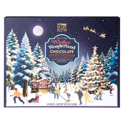Moser Roth Advent Calendar - 24 Winter Wonderland Luxury Chocolates offers a delightful countdown to the holidays. Each door reveals a unique chocolate piece, perfect for pairing with cheese and wine. Enjoy a luxurious tasting experience as you celebrate the season. Ideal for gifting or adding a touch of festive indulgence to your own holiday traditions. Make each day in December special with Moser Roth Advent Calendar - 24 Winter Wonderland Luxury Chocolates.