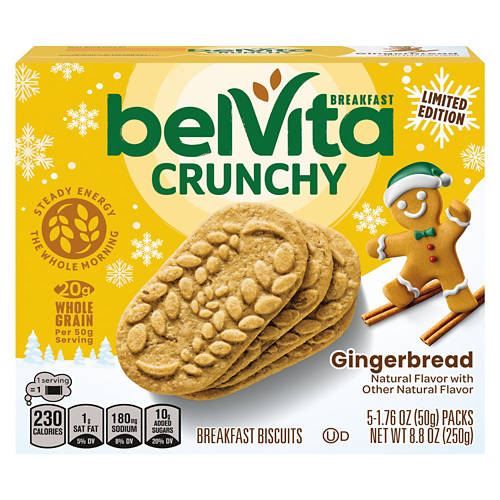Nabisco Gingerbread Belvita is your morning energy boost with 20g of whole grain per serving. These breakfast biscuits provide steady energy for the whole morning. Enjoy the natural gingerbread flavor with your coffee or on-the-go. Nabisco Gingerbread Belvita makes breakfast quick and delicious.