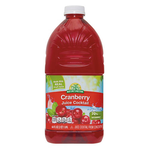 Nature's Nectar Cranberry Juice Cocktail is made with real fruit juice and provides 70% of your daily value of Vitamin C. Enjoy it chilled straight from the fridge or use it as a mixer for vibrant cocktails. It's a refreshing way to stay hydrated. Grab a bottle and indulge in the tangy, sweet taste that only Nature's Nectar delivers.