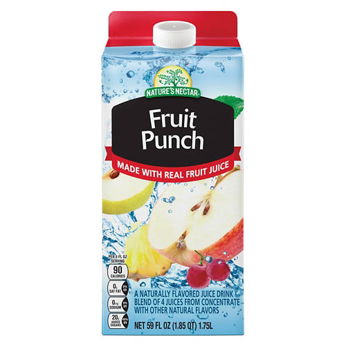 Nature's Nectar Fruit Punch Juice is a delicious blend made with real fruit juice from concentrate. Enjoy the refreshing mix of grape, pineapple, apple and pear juices. Perfect for breakfast, lunch or any time you crave a fruity drink. With 90 calories per serving, it's a tasty way to stay hydrated. Add a cup of Nature's Nectar Fruit Punch Juice to your day for a burst of fruity flavor.
