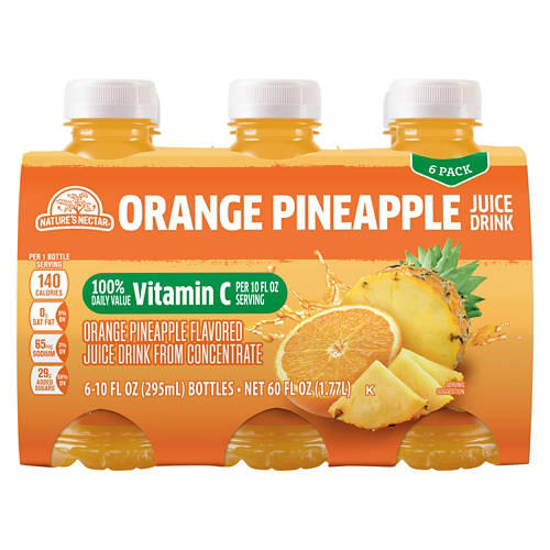 Nature's Nectar Orange Pineapple juice drink brings a burst of tropical flavor with every sip. It's a refreshing choice for breakfast, lunch or an afternoon pick-me-up. Enjoy it chilled straight from the fridge or over ice for a delightful refreshment. With 140 calories per bottle, Nature's Nectar Orange Pineapple juice drink is a delicious way to quench your thirst.