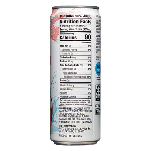 Nature's Nectar Sparkling Coconut Water & Watermelon is a refreshing beverage that combines the tropical taste of coconut water with the juicy flavor of watermelon. Perfect for quenching your thirst on a hot day or adding a fruity twist to your favorite cocktails. With just 90 calories per can, this naturally flavored drink is a delightful choice for a light and tasty refreshment. Enjoy the bubbly blend of nature’s finest flavors.