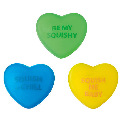Looks like your favorite Valentine candy, but squishes like the NeeDoh you love Teenie NeeDoh size with groovy sweetheart sayings Dough-filled sensory satisfaction 3 hearts in a gift box Assorted colors and sayings; each 1.5" wide Ages 3+