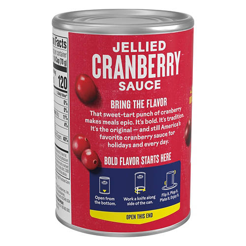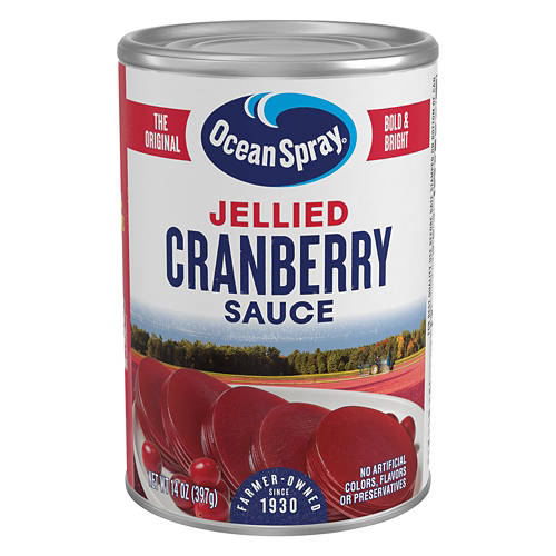 Ocean Spray Jellied Cranberry Sauce is the bold and bright addition your meals need. Made with no artificial colors, flavors or preservatives, this classic favorite is perfect for holiday dinners or as a tangy side to your everyday dishes. Slice it up and add a vibrant touch to your plate. Enjoy the original taste that has stood the test of time.