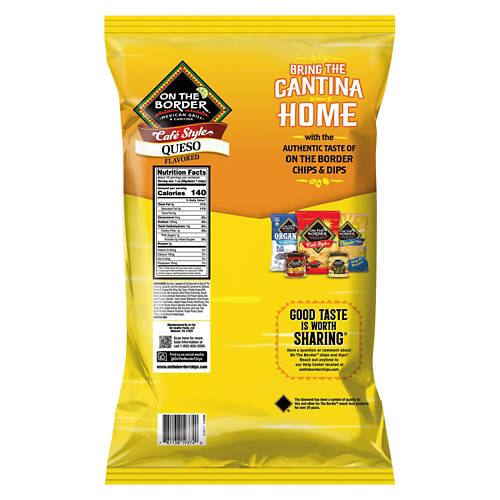 On The Border Queso Flavored Café Style Tortilla Chips are your new favorite for a crunchy, cheesy delight. Perfect for dipping in salsa or enjoying straight from the bag, these chips bring a bold flavor to your snack time. Whether for party platters or a solo treat, On The Border Queso Flavored Café Style Tortilla Chips are a must-have addition to your pantry. Get ready for a flavor that stands out.