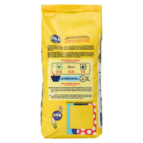 P.A.N. White Corn Meal is a gluten-free staple for your kitchen. Made from 100% white corn, it's ideal for making arepas, cornbread and other delicious dishes. Simply mix with water to create the perfect dough for your favorite recipes. Its versatility makes it a must-have for both traditional and contemporary cooking. Elevate your meals with P.A.N. White Corn Meal and taste the difference.
