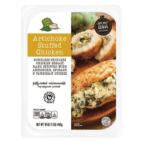 This Park Street Deli Artichoke, Spinach, & Parmesan Cheese Hand Stuffed Chicken Breast is perfect for busy nights! The boneless and skinless chicken breast has been hand stuffed with a creamy parmesan, spinach, and artichoke mixture for a delicious bite every time. Pair yours with a crisp salad and a warm roll for a tasty and hearty dinner!