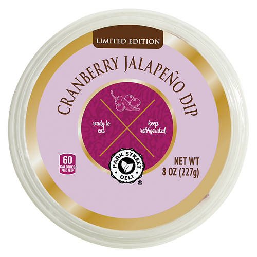 Park Street Deli Cranberry Jalapeno Dip combines the sweet tartness of cranberries with a spicy kick from jalapenos. Perfect for spreading on crackers or pairing with your favorite veggies, it adds a unique twist to your appetizers. Add this unique dip to your spread and watch it become a crowd favorite.