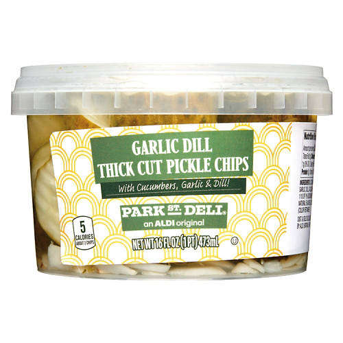 Park St. Deli Garlic Dill Pickle Chips offer a tangy crunch with every bite. Made with cucumbers, garlic and dill, these thick-cut pickle chips are perfect for adding zest to sandwiches, burgers or as a savory side. With only 5 calories per serving, they provide a flavorful, guilt-free addition to any meal. Enjoy the bold taste of Park St. Deli Garlic Dill Pickle Chips and make your dishes pop with flavor.