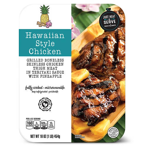 Switch up your usual dinner rotation with this Park Street Deli Hawaiian Style Chicken! The grilled boneless and skinless chicken thighs sit in flavorful teriyaki sauce with fresh pineapples for a hint of tang. Just pop it in the microwave for a delicious and filling meal in minutes!