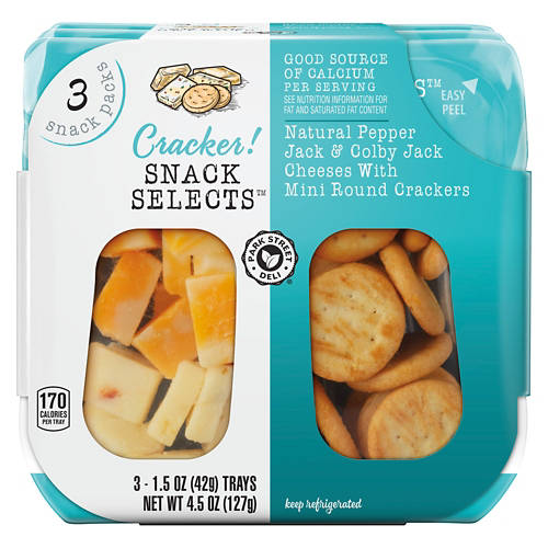 These Park Street Deli Natural Pepper Jack & Colby Cheese with Mini Round Crackers Snack Packs are a delicious and convenient option for your snacking needs. Each pack offers a good source of calcium per serving. Perfect for on-the-go, these packs combine the zesty flavor of Pepper Jack with the creamy richness of Colby Jack, paired with crispy mini round crackers. Enjoy this satisfying combination at work, school or during your next outdoor adventure.
