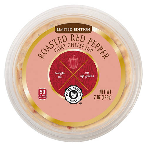 Park Street Deli Roasted Red Pepper Goat Cheese Dip has a bold, savory flavor. This ready-to-eat dip pairs perfectly with veggies, crackers or as a spread on sandwiches. Enjoy the rich taste of roasted red peppers in every bite.