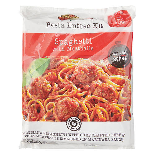 This Park Street Deli Spaghetti with Meatballs Meal Kit offers a delicious and convenient dinner solution. This artisanal spaghetti features chef-crafted beef and pork meatballs simmered in marinara sauce. Simply heat, mix and serve for a hearty meal. Perfect for busy nights when you crave a home-cooked meal without the lengthy preparation. Satisfy your hunger with this flavorful meal kit that brings the taste of homemade spaghetti to your table in minutes.