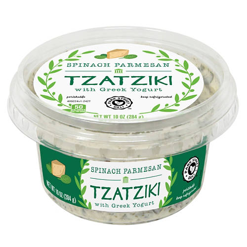Switch up your snack rotation with this Park Street Deli Spinach Parmesan Tzatziki Dip! Made with tangy Greek yogurt, the creamy dip blends fresh spinach leaves with parmesan cheese for a delicious, flavorful bite. Enjoy yours atop crispy crostinis or with fresh veggies on your next snack break!