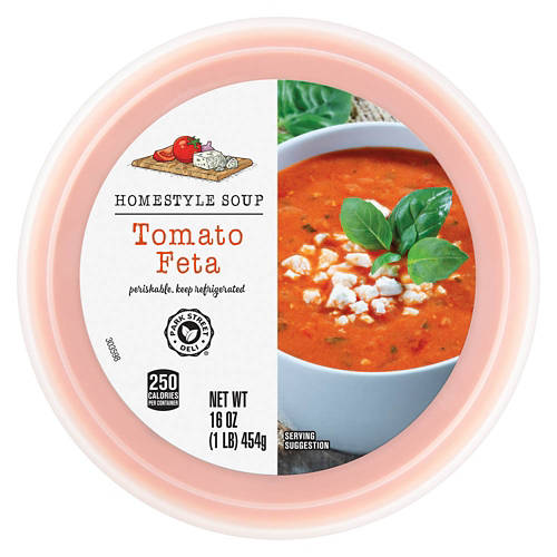 Park Street Deli Tomato Feta Soup is a hearty homestyle soup that combines rich tomato flavor with tangy feta cheese. Enjoy a bowl of this comforting soup on a chilly evening or pair it with a fresh salad for a quick lunch. Perfect for those who appreciate a flavorful, ready-to-eat meal option. Enjoy the delightful blend of tomato and feta with every spoonful.