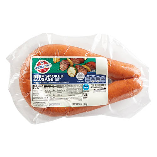 Parkview Beef Smoked Sausage from ALDI is delicious and easy to prepare. Made with beef with no artificial flavors, colors, fillers or by-products, you can feel good about enjoying this sausage. Easily slice to use on kebobs, in pasta sauces, stir fry, and more.