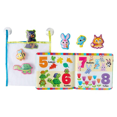 - Includes a mesh bag for easy storage, 6 suction cup figures, and waterproof bath book. - Designed for children 24 months and over.