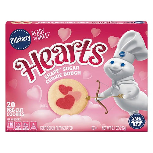 This Pillsbury Valentine's Day Cookie Dough is the perfect sweet treat for the whole family! Safe to eat raw, the ready-to-bake dough has been pre-cut into round sugar cookies that feature festive heart designs. Just pop yours into the oven for a delicious dessert in minutes!