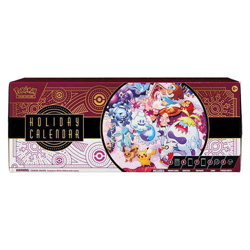 Great Holiday fun for the Pokémon fan everywhere! Includes the following: The Pokémon TCG: Holiday Calendar includes tons of surprises to discover. Pokémon TCG cards with a festive stamp, Pokémon TCG booster packs, Pokémon TCG 3-card fun packs, Pokémon coins, Pokémon sticker sheets, sidekick dangler, Plus, find a code card for Pokémon TCG Live!
