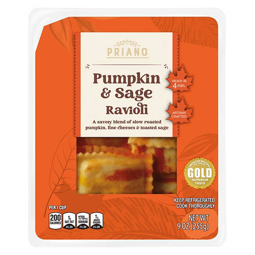 Priano Butternut Squash and Pumpkin Sage Ravioli are a make a quick and delicious fall meal.
