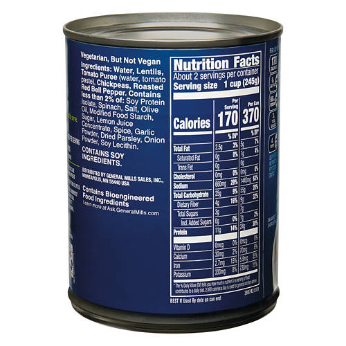 Progresso Mediterranean Style Lentil Soup delivers 24g of protein per can for a hearty meal. Enjoy it as a quick lunch or dinner option. This soup is perfect for anyone looking for a protein-packed meal with a rich Mediterranean flavor. Heat it up for a comforting bowl of goodness. Satisfy your hunger with Progresso Mediterranean Style Lentil Soup and enjoy a flavorful meal that keeps you going.